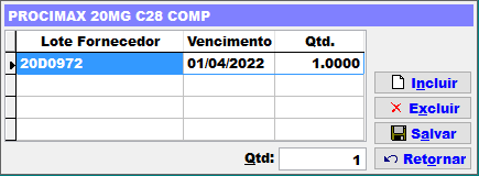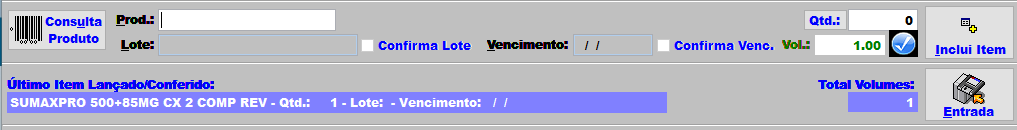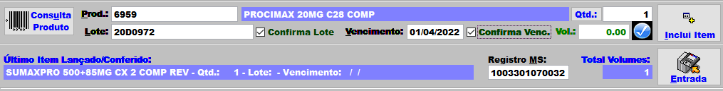 Caso o produto seja um medicamento controlado, será necessário confirmar o lote e vencimento marcando o check box "Confirma Lote" e "Confirma Venc.", observe exemplo: